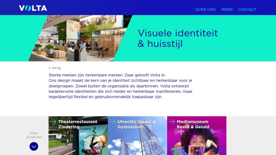 Ons design maakt de kern van je identiteit zichtbaar en herkenbaar voor je doelgroepen. Zowel buiten de organisatie als daarbinnen. Volta ontwerpt karaktervolle identiteiten die zich helder en herkenbaar manifesteren, maar tegelijkertijd flexibel en gebruiksvriendelijk toepasbaar zijn.